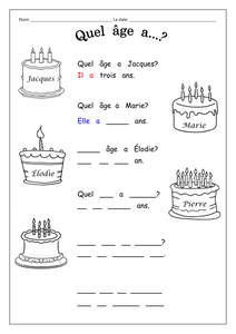 Copie et complète dans ton cahier avec l´âge correcte. (copia y completa en tu cuaderno con la edad correcta)